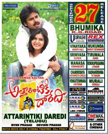 Attarinitki Daaredhi Banglore Theaters List